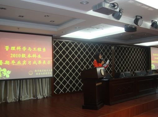 暑假期间,管工系工业工程、信息管理与信息系统专业2010级本科生51人分赴沈阳飞机工业(集团)有限公司、常州康鼎医疗器械有限公司、南京南化建设有限公司、江苏秀强玻璃工艺股份有限公司等四家单位开展毕业实习。会上,14名实习小组代表分别从车间布局优化、生产计划安排、生产现场管理、工时定额预测、管理信息系统规划等方面展示了实习成果,与会教师进行了较为深入的点评与分析。最后,经过评委会的认真评议,6个实习小组分别荣获一、二、三等奖。