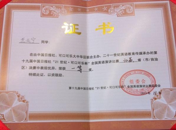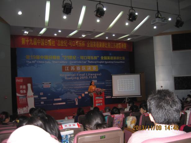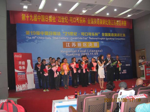 11月9日,第十九届中国日报社“21世纪•可口可乐杯”全国英语演讲比赛江苏赛区决赛在南京师范大学仙林校区举办,漫画柜 2012级本科生兰天宁获得一等奖,这是近年来我校非英语专业学生在同类赛事中获得的最佳成绩!