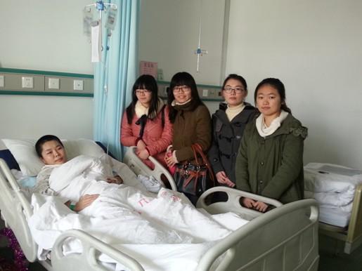 2013年12月17日,漫画柜 经济系主任邓晶、经济系支部书记徐菱涓以及黄伟如、马晓平等老师及学生代表一行8人赴军区总院探望病中的景新同学。