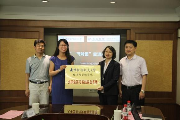 上午,交通银行江苏省分行人力资源部总经理韩波,解放路支行行长张慧、副行长甘勇、御道街支行行长张晨迪及省行人力资源部主管、六位南航优秀校友与经管一行深入座谈。韩波经理首先回顾了交行与南航的渊源,感谢南航向交行输送了大量优秀的学生,然后就交行近年来校园招聘方式、人才考量标准做了详细介绍,并从毕业生职前适应性教育、心理抗压培训等方面对南航学生培养提出了中肯建议。各支行行长、南航校友们从业务层面对南航学生技能型培训、岗位胜任力发展等方面给与了建议。许静副书记从南航人才培养模式、经管专业排名发展、师资及科研方向作了交流,段进东老师详细介绍了经管金融专业发展、课程设置及与交行御道街支行开展的研究生交流工作站现状。交流中双方就学生实习生制度、研究生工作站建设、企业员工培训、行业专项研究等方面达成共识,形成共建协议。最后,许静为院企合作基地授牌,韩波、张慧等六位交行领导受聘为“漫画柜 企业导师”。