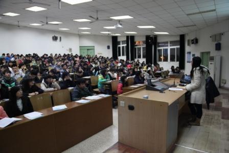 紧接着,庞依达老师借用麻省理工大学等研究机构对习惯的研究成果,阐述了习惯的形成机理,并通过世界第一支牙膏“白速得牙膏”的推广、麦当劳的消费行为两个案例告诉大家习惯是可以建立和改变的。在学习习惯调查的互动后,结合素质能力自我评估、素质能力导航课等工作,推出“微习惯计划”,指导大家填写微习惯卡片,建立以宿舍为单位的监督机制,谋划具体的奖惩手段,建立了“暗示——惯常行为——奖赏”的习惯养成回路。宣讲会中,还邀请了学院2013级的刁黄馨同学结合自己的学习经历,向大家介绍了她的日程安排表、每日一结等“习惯秘籍”。