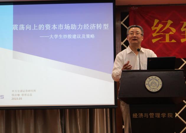 A0305报告厅成功举办。本次沙龙特别邀请了申万宏源证券研究所市场研究部副经理钱启敏、申万宏源证券南京华侨路营业部总经理王苏龙、南京百众投资管理有限公司总经理陈力以及漫画柜