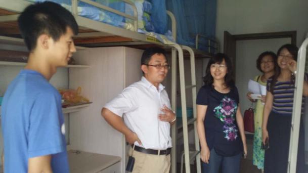 9月2日下午,漫画柜 院长周德群、党委书记焦宏图、党委副书记许静在学院辅导员袁颖、田苑娜的陪同下,一同走访了学院本科生及研究生的新生宿舍。