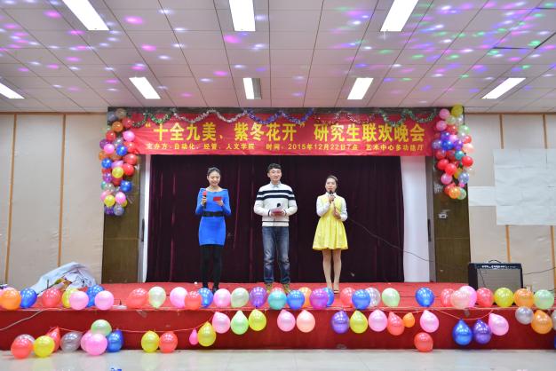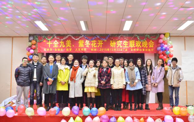 为加强不同院系、不同专业同学间的合作与交流,加深各学院同学间的兄弟姐妹情谊,同时丰富研究生校园生活。2015年12月22日晚,经管、人文与自动化学院在江宁校区艺术中心多功能厅联合举办了一场别开生面的晚会——“紫东花开,十全九美”联欢会。