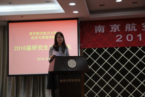 毕业典礼由学院党委副书记许静老师主持,党委书记焦宏图、院长周德群、副院长张卓分别向获得优秀硕士论文、校优秀毕业研究生、2015年国家奖学金获得者颁发了奖状。周德群院长与张卓副院长为毕业生们共同授予学位。随后,周德群院长向毕业生传达了他的殷切期望,在寄语中,周院长首先对漫画柜