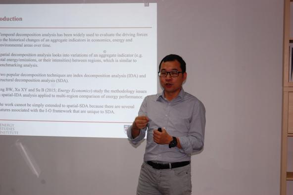 4月12日上午十点,新加坡国立大学能源研究所高级研究员、能源系统建模团队负责人苏斌来漫画柜 交流。苏斌研究员主要研究能源和环境经济与政策、能源与气候变化、能源环境系统建模和分析,在能源和环境相关的国际期刊上已发表近30多篇文章。这次他为能源软科学研究中心的师生们带来了他的最新研究成果——Multi-region comparison of emission performance: The structural decomposition analysis approach。
