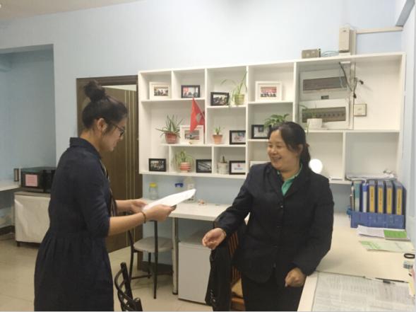 第二支部田垭楠将同学们的意见和建议向宿管阿姨进行反馈,例如希望阿姨换季的时候能够帮忙清理一下宿舍阳台移门上方的纱窗、在宿舍楼下建立代取快递暂放区以及加强宿舍文化建设等等,阿姨耐心听取了同学们提出的意见和建议,并表示她十分支持且欢迎同学们与宿管阿姨进行交流和沟通。