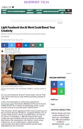 的Jhony Choon Yeong Ng等学者发现,大学毕业生如果感觉自己被困在他们不喜欢的岗位上时就会出现通过使用社交媒体来逃避压抑感的现象。为了规避这种负面效果,有些企业不但禁止了工作场合社交媒体的使用,更设置了惩罚措施。然而,中国学者指出,这种工作场所的社交媒体使用只是大学毕业生的自我心理治疗行为(self-therapeutic behaviors),不应该被视为渎职行为。而且一味地惩罚不会解决大学毕业生的社交媒体使用问题,只会让他们从使用社交媒体转为其他的自我心理治疗行为。 Emerald集团的新闻发布引起了美国媒体Hurrington Post记者的注意,该媒体记者通过email的形式,对黄老师进行了采访,并在美国时间6月7日针对论文做了专题报道:Light Facebook use at work could boost your creativity。(//www.huffingtonpost.com/entry/facebook-use-work_us_57506e44e4b0c3752dccd335)。在介绍了黄博士的研究成果后,报道中指出,为了验证黄老师等人的理论,记者通过社交媒体,针对2,028人展开调研,发现超过一半的人使用社交媒体来进行自我心理治疗。报道还提及,黄老师等人的理论框架受到Ran Zilca在《哈佛商务评论》期刊发表的研究论文的支持。2016年6月8日,全球最大招聘类杂志《The Global Recruiter》在他们的英国与欧洲板块发表评论型文章《Cyberloafing warning: Graduates in the wrong job use ‘avoidance strategies’》,对黄博士的研究发现做了介绍(详见//www.theglobalrecruiter.com/news/graduates-in-the-wrong-job-use-avoidance-strategies/7463)。 漫画柜