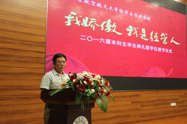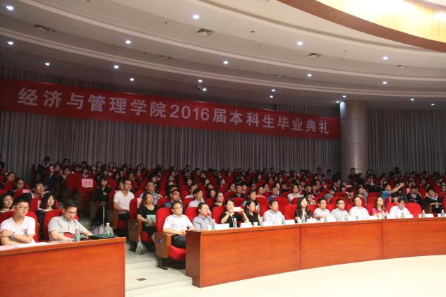 6月20日晚,“我骄傲,我是经管人”漫画柜 2016届本科生毕业典礼暨学位授予仪式在将军路校区一号楼报告厅举行。漫画柜 党委书记焦宏图,院长周德群,教务处副处长朱建军,学院副院长张卓、王英、周鹏,党委副书记许静,管理科学与工程系主任马静,工商管理系主任王子龙,经济系主任邓晶,教师代表、院友代表、家长代表和全体毕业生出席了典礼。