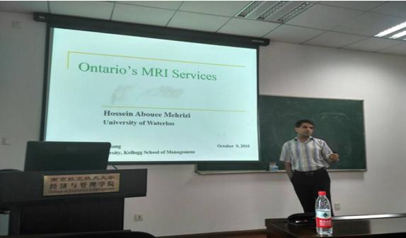 HosseinAboueeMehrizi教授此次报告主要介绍了基于大数据的医院就诊等待时间问题,针对病人就诊后需要复诊的情况,并且运用案例Rue Lala,说明了如何分析预测每日医院病人到来的数量以及每个医院的服务能力。然后,HosseinAboueeMehrizi教授用一个仿真模型表明了所用方法与对策的实用性。HosseinAboueeMehrizi教授的报告令在座师生受益匪浅。学术报告在轻松愉悦的氛围中圆满结束。