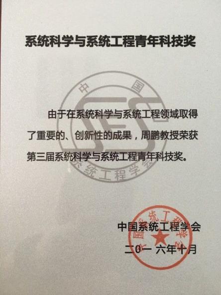 中国系统工程学会是由钱学森、宋健等学者共同倡议并筹备,于1980年11月18日在北京正式成立的国家一级学会。“系统科学与系统工程科学技术奖”是中国系统工程学会于2012年设立的当前中国系统工程学界最高奖项,用以奖励在系统科学与系统工程领域取得卓著成就和巨大贡献的科技工作者。该奖项每两年颁发一次,今年是第三届,下设“终身成就奖”、“理论奖”、“应用奖”及“青年科技奖”,全国共有4位青年学者获得本届系统科学与系统工程青年科技奖。