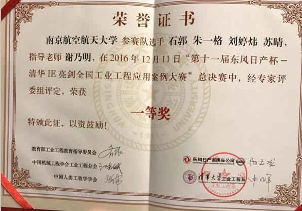 我校学生在第十一届“东风日产杯”清华IE亮剑全国工业工程应用案例大赛总决赛中获佳绩