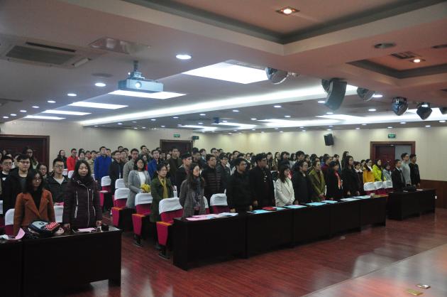 A0305会议中心召开。学院党委书记焦宏图、党委副书记许静、团委书记任慈,各年级辅导员们及学生党员代表参加了大会。会议由研究生辅导员袁颖主持。