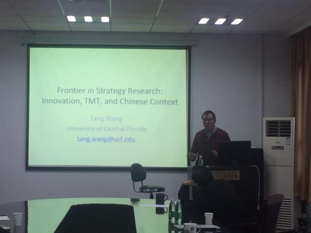 2016年12月21日下午,美国中佛罗里达大学王唐博士应邀在学院702会议室为学院师生做了一场主题为《Frontier in Strategy Research: Innovation, TMT, and Chinese Context》的学术报告。