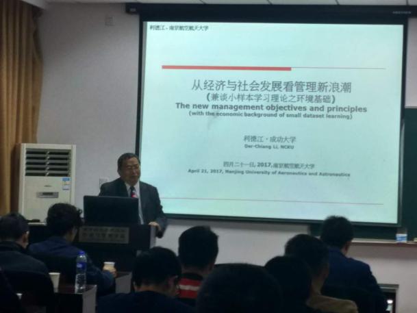 利德江教授作了题为“从经济与社会发展看管理新浪潮——兼谈小样本学习理论之环境基础”的报告,从世界经济发展的趋势入手,以Samsung Note7和Trump就任总统等具体案例展开陈述,见微知著,总结了世界范围内经济竞争态势及其对微观制造领域的深度影响,由此对世界范围内的竞争前景进行了展望,并且深度分析了小样本学习理论在这种竞争态势中可能发挥的作用,以全新的视角展示了对管理的新方法与新浪潮的思考。报告充满激情,引发了在场老师和同学们的交流和思考。