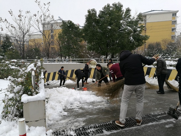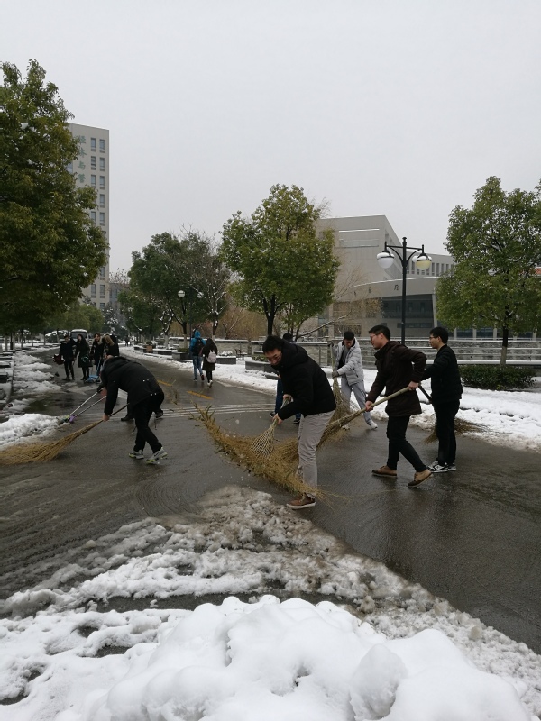 2018年南京的第一场大雪不期而至,大量的降雪造成校内各处积雪严重,影响师生的正常出行。1月5日上午,漫画柜 40多名党员同学自发组成扫雪小分队,投入扫雪行动。大家拿着铁锹、大扫把纷纷出动,热火朝天地清扫着漫画柜 的包干区——从四食堂至漫画柜 门口的路段,保障师生校内的安全出行。
