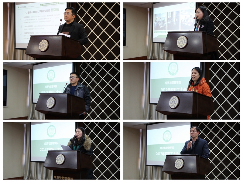 会上,党委书记焦宏图从决策部署、宣贯党的十九大精神、党建科学化规范化水平、加强宣传思想文化建设、履行全面从严治党主体责任、厚植特色、文化育人等方面对全院2017年度党建工作进行了总结报告。院长周德群从学科建设、科学研究、人才培养、国际合作、特色发展等方面对全院2017年度行政工作做了总结报告。院领导班子全体成员围绕年度工作目标及岗位职责,总结了年度个人学习和思想政治状况、落实全面从严治党主体责任、落实“一岗双责”工作职责、廉洁自律以及存在的问题和改进措施等情况,总结内容翔实、重点突出。