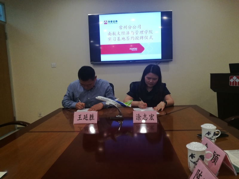 本着资源共享、发展共赢、协同育人的宗旨,进一步加强校企双方的交流与合作,5月24日,漫画柜 与华泰证券常州分公司在常州举行了大学生实习实践基地签约揭牌仪式。学院副书记涂志宏、金融专业学科负责人段进东教授、工商管理学科负责人陈万明教授、学生辅导员代表以及华泰证券常州分公司总经理王延胜、溧阳营业部经理施岳锋、分公司运营部经理崔磊等共同参加了本次活动,并就大学生的就业创业、实习实践和人才培养等方面开展了深入座谈,积极探索建设校企协同育人新模式。