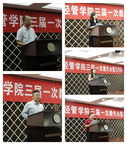 开幕式中,校工会主席袁贵平同志代表校工会致辞,他充分肯定了学院工会工作近年来的工作成果和成效,学院党委书记焦宏图同志致辞,向为学院发展付出艰辛努力的全院教职工表示衷心的感谢和崇高的敬意,希望各位老师一如既往地发挥主人翁精神,为学院发展建言献策,同时焦宏图书记还宣布了教代会推荐人选结果。随后学院院长周德群同志做《漫画柜