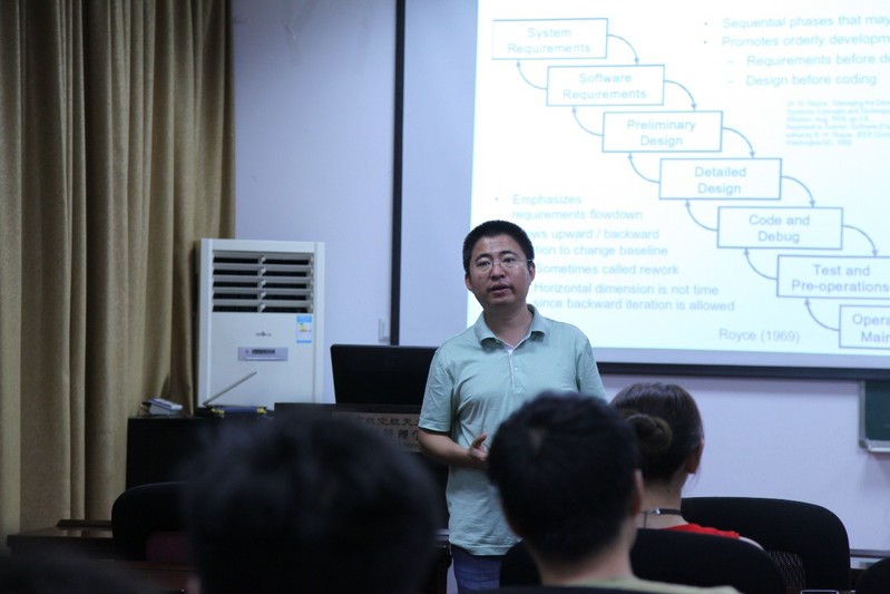 解总工程师此次报告围绕装备研制系统工程的主题,以自己的研发工作经历为基础,从实践角度介绍了系统工程的源流,指出系统工程是随着产品复杂性的增加发展起来的。解总工程师详细介绍了我国武器装备研制中系统工程的主要应用——瀑布模型,但是瀑布模型在实际的应用中存在一系列的问题,因此复杂产品的研发是从传统的系统工程(TSE)向基于模型的系统工程(MBSE)发展的,进而提出了当前我国装备研制的短板在总体设计与协调,并从架构师的职责出发,对产品进化、功能及可靠性一体化建模、架构权衡和优化等方向进行了阐述。最后,解总工程师以登月为题做了示例练习。解总工程师理论结合实际,生动形象地讲述了装备研制系统工程地的应用现状与发展,通过示例练习引起了现场同学与老师的热烈讨论,现场氛围十分热烈,报告结束时现场响起了阵阵掌声。