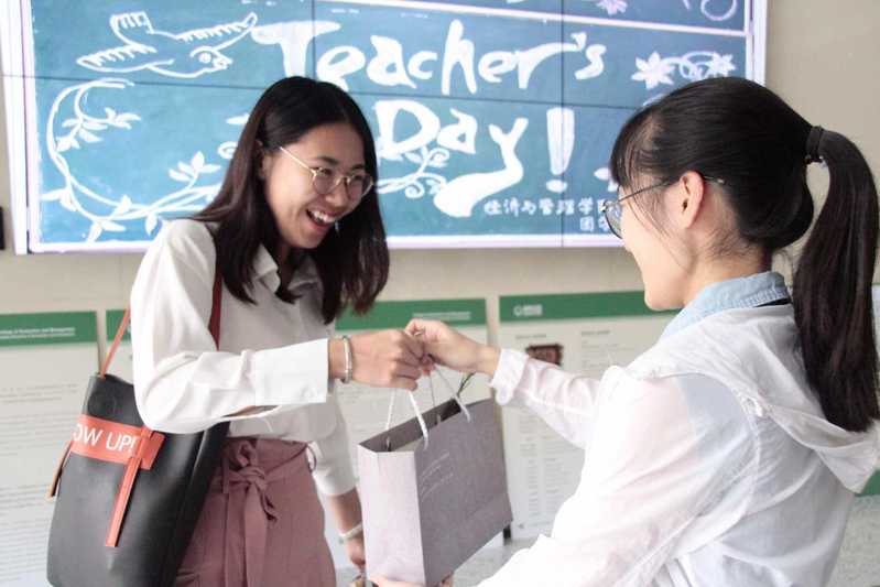 教师节是同学们表达感恩的一个纪念节日,我们更希望同学们能把这份对老师的敬意和感激延续到每一天的每一节课堂。经管团学也将通过团日活动、主题教育活动等形式,以良好的品行、优异的成绩、过硬的素质等实际行动,持续表达对老师们的感恩之情。