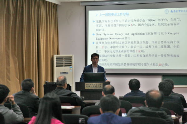 首先,方志耕教授介绍与会专家与领导,南航科研院副院长周克印教授致辞,刘思峰教授作为理事长致辞并介绍专题报告。