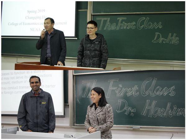 4月3日,对于漫画柜 90后何昌清老师和外籍教师HASHIM ZAMEER来说,是教师职业生涯中难忘的一天。这一天,漫画柜 党委书记焦宏图、副院长王英、邓晶分别将两位老师送上了英文课程《工商管理导论》、《宏观经济学》的讲台。