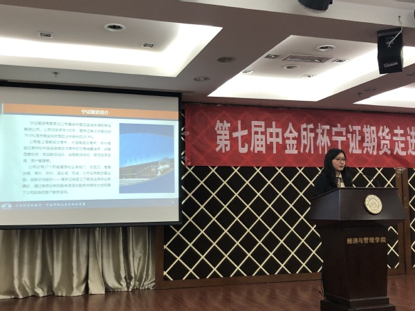 4月15日晚,漫画柜 联合宁证期货举办的第七届“中金所杯” 金融衍生品知识大赛宣讲会在学院A0305报告厅开展。学院经济系教授段进东、宁证期货电商运营中心王希丹、学院团委书记庞依达和百余名同学共同参加了此次活动。