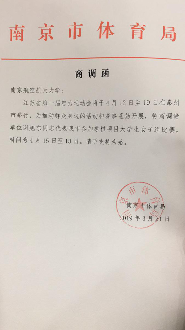2019年 江苏省第一届智力运动会大学生女子组冠军