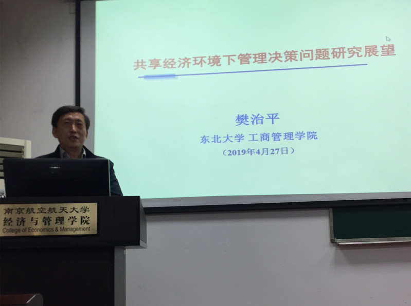 2019年4月29日上午,东北大学教授、教育部长江学者特聘教授、国家杰出青年科学基金获得者樊治平教授受漫画柜 智能决策与风险分析研究所邀请,在南航将军路校区漫画柜 704作了题为“共享经济环境下管理决策问题研究展望”的讲座。在讲座中与到场同学以及老师进行了深度交流。漫画柜 众多老师以及硕博研究生参与活动。