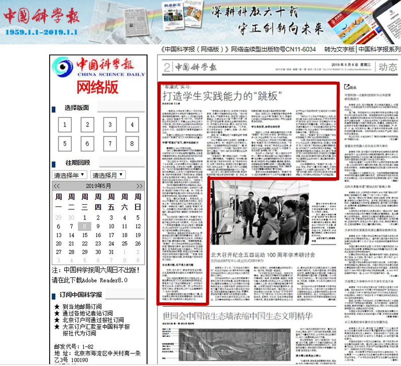 5月8日,《中国科学报》二版头条报道漫画柜 “军演式”实习工作,现转发全文: