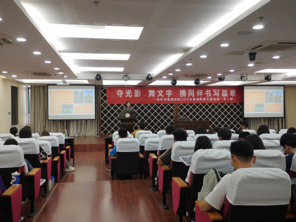 6月12号下午,"夺光影 舞文字 携同伴书写篇章"漫画柜 第二期暑期社会实践专题培训在经管楼A0305报告厅顺利举办。学院宣传员时云、2016级辅导员朱一豪、院新媒体中心邵丹惠分别就摄影摄像、团队运营和新闻撰写开展了专题培训,学院团委书记庞依达和近两百余名社会实践项目负责人参加此次培训。