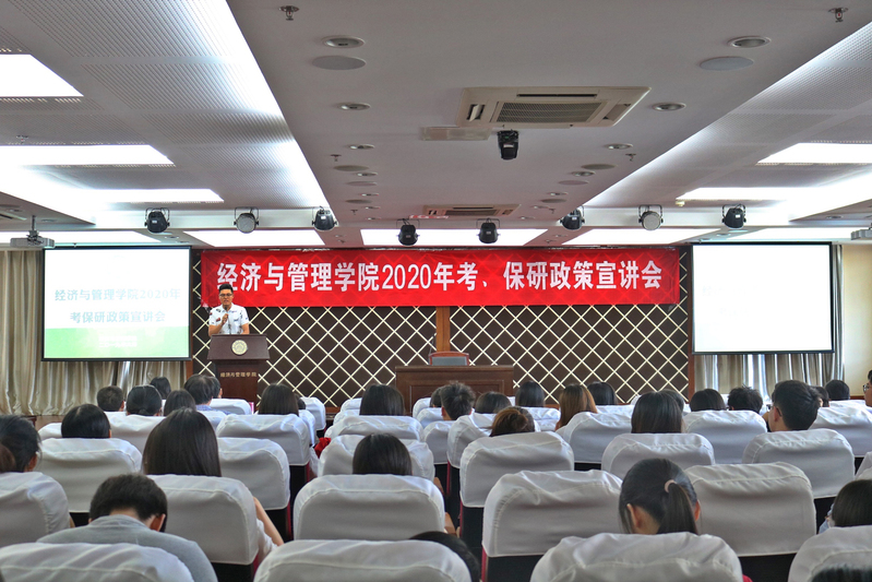 为了帮助2020届毕业生了解漫画柜 研究生招生政策,合理规划考研、保研,6月24日,漫画柜 在A0305报告厅举行2020届考保研政策宣讲会。漫画柜 副院长王英、管工系系主任马静、工商系系主任谢嗣胜、经济系系主任袁潮清、各学科建设负责人、系所骨干教师、辅导员及百余名2016级学生参加了本次活动。