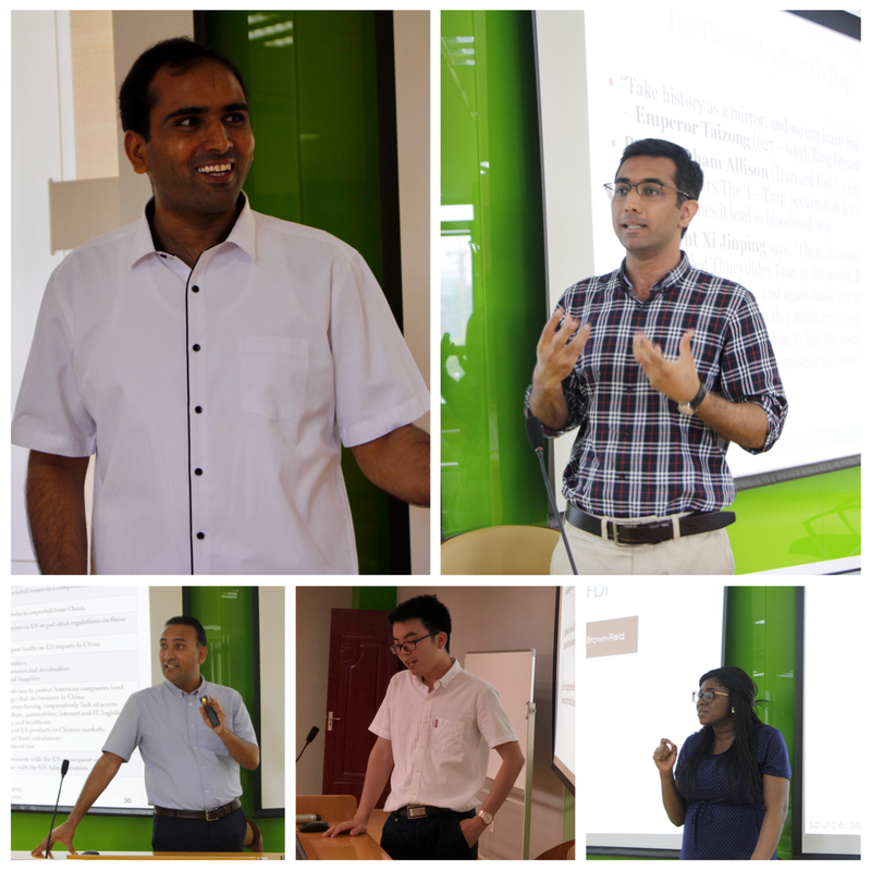 Hashim Zameer有着丰富的研究经验,他本次的演讲主题是“国际市场营销研究”,他为大家介绍了目前国际营销领域的研究情况,以及如何选择该领域的论文研究方向。周小勇的演讲题目是“信息和通信技术如何推动碳排放:基于中国的行业层面分析”,他将通信技术和碳排放相结合的创新研究引起了同学们的兴趣。值得一提的是,Sharafat Ali和Saad Ahmed Javed的演讲不约而同地选择了中美贸易战这一背景,Sharafat Ali的演讲着重点在于解决冲突的战略,Saad Ahmed Javed则着眼于货币和银行行业的格局变化。最后一位嘉宾Elizabeth Narkie Aboah的研究领域是国际贸易,她在研讨会上和大家分享的主题是“非洲的外商直接投资与经济增长”,探讨了近几年非洲经济增长情况和外商投资之间的关系。