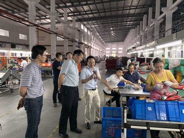邓晶一行在章海平、舒伟亮的陪同下参观了电线电缆生产线、装配车间及产品陈列室,了解了企业生产的全过程,听取了广为公司在该产品上的特色发展和市场应用。