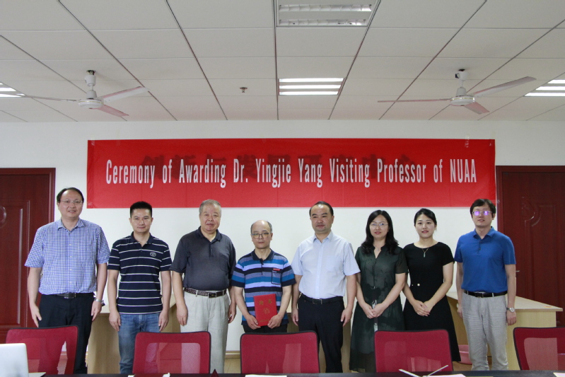 仪式由沈敏主持,焦宏图介绍了杨英杰教授的个人履历、学术成就及与南航的合作情况等,随后陶勇为杨英杰教授颁发客座教授证书并为其佩戴南航校徽。