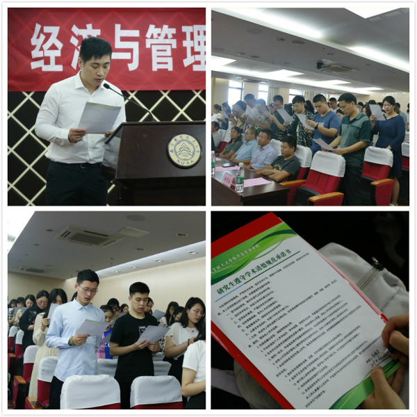 同时,2019级全体研究生在学院领导和老师们的见证下签订《漫画柜 研究生学术道德规范承诺书》,全体新生宣誓做“严格遵守有关科学研究的规定和程序,努力成为优良学术道德的传承者和良好学术风气的维护者”。