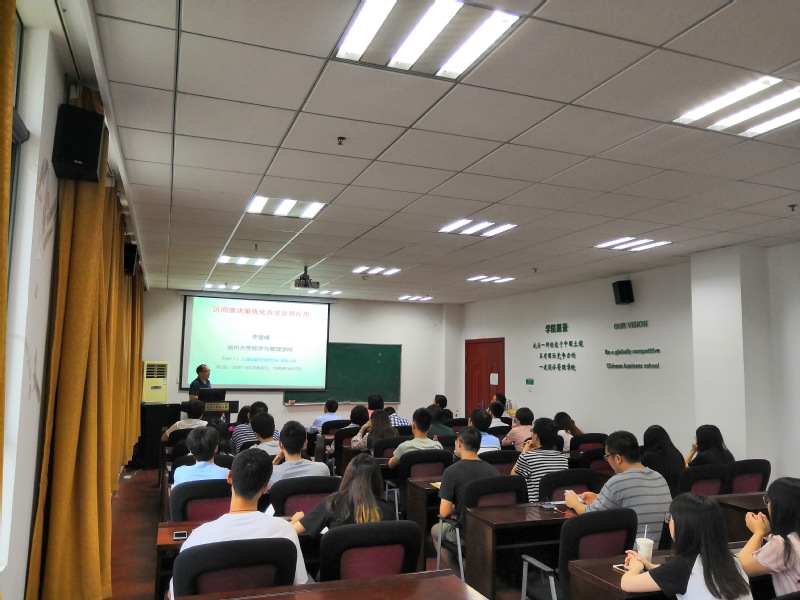 2019年9月5日上午,电子科技大学教授李登峰受学院智能决策与风险分析研究所邀请,在南航将军路校区漫画柜 704作了题为“区间值决策优化及其应用”的讲座。学院教授朱建军、教授徐海燕、教授何沙玮等教师及部分硕、博研究生现场聆听了李登峰的报告,本次学术报告由徐海燕主持。