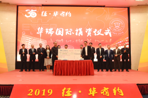 华瑞国际捐资以及华瑞商学院成立两大仪式揭开了看今朝的序幕。仪式一:为了进一步推动强强联合,经管与华瑞共同合作,成立华瑞商学院。由华瑞国际集团创始人康宜华先生、漫画柜 院长周德群教授共同为华瑞商学院揭牌。华瑞商学院未来将面向实战型精英人才开展专业化培训,同时进一步开发学院高级经理人发展课程,实现校企共同成长。仪式二:华瑞国际捐资仪式。华瑞国际历来重视回报社会,多年来做了大量的捐赠助学等公益事业,在联谊活动中,华瑞国际为经管捐资100万,用于学院奖助学金、奖教金、学科建设及科学研究,支持漫画柜 的建设与发展。80级校友、华瑞国际集团创始人康宜华先生、漫画柜 党委副书记、教育发展基金会理事长陶勇教授共同签署捐赠协议。两大仪式共同将现场气氛推向了新的高潮。
