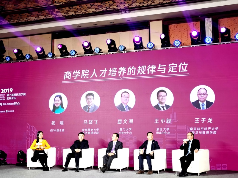 由腾讯新闻主办的2019第七届腾讯商学院发展论坛于11月12日在北京成功举办,国内众多知名商院院长、主任,权威机构负责人以及资深财经媒体人齐聚一堂,以“共谋教育发展,再铸商科初心”为主题,共同探讨新形势下商科教育的初心与发展。经管院副院长王子龙、MBA中心执行主任杜刚应邀出席论坛。
