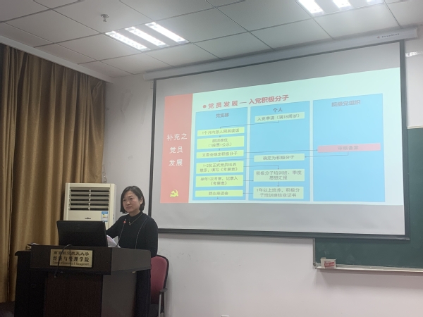 学生党员考核评估办法》、《党员发展全流程台账》等制度文件,对党建基础业务能力进行了培训,明确了党员发展全流程台账工作中的责任主体与实施步骤。