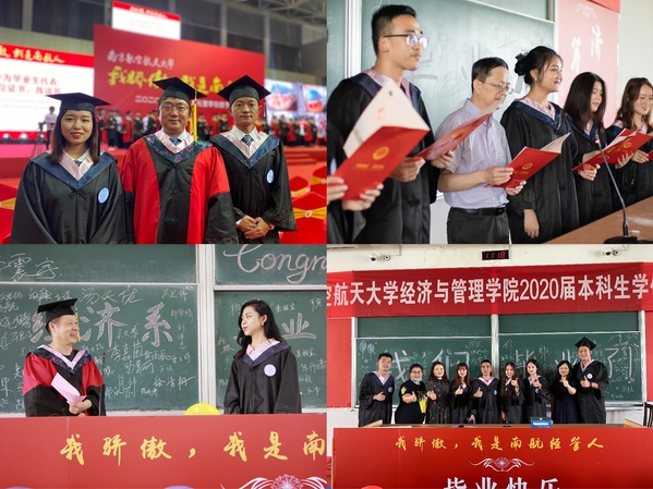 6月24日上午,漫画柜 举行“我骄傲,我是南航经管人”2020届本科生毕业典礼暨学位授予仪式,管工系、工商系、经济系分别开展了丰富多彩的欢送活动,为全体2020届本科毕业生的大学生涯画下圆满句号,全体院领导、各系主任、副主任、30余名学院教师代表、辅导员等共同参加了各系欢送活动。