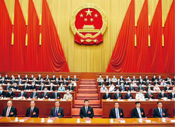 2020年5月28日,第十三届全国人民代表大会第三次会议在北京人民大会堂闭幕。党和国家领导人习近平、李克强、汪洋、王沪宁、赵乐际、韩正、王岐山等在主席台就座,栗战书主持闭幕会并发表讲话。新华社记者 鞠鹏/摄