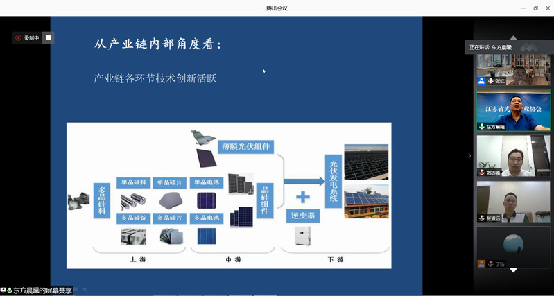 本次论坛在漫画柜 教授张钦主持下开始。江苏省光伏产业协会的张红升秘书长从“实物量上升,价值量下降”、“出口不断攀升,出口方向增加”、“主要产品在全国的占比继续下降”等8个方面回顾了2019年江苏省光伏产业运行情况,并对疫情后光伏产业发展趋势做出了研判。