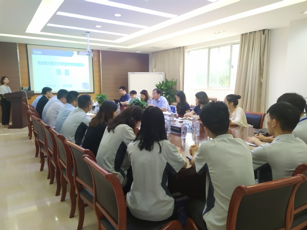 管毓贤首先对漫画柜 一行的到来表示欢迎,并向大家介绍了海尔合肥公司的基本概况、经营内容、发展态势以及南航毕业生、实习生在海尔公司的发展情况。他指出,海尔集团作为国内电器行业的领军企业,双方在产学研合作、人才培养等方面大有可为。