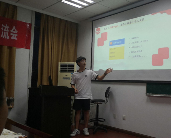 首先,邓渊泽从讲团课的流程、经验和心得三个方面做了详细而幽默的介绍,展现了清晰的讲团课思路,分享了一些实用的团课技巧,并以自身经历鼓励各位团干部用适合自己的方法去讲授团课,为团干部讲团课作出了优秀的示范。