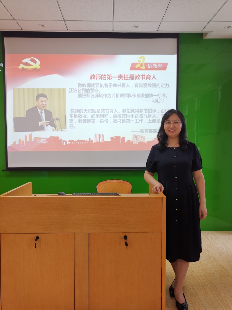 焦宏图书记首先解读了《中共漫画柜 委员会关于加强和改进教师思想政治工作的意见》和《漫画柜 教职工师德“一票否决”实施办法(试行)》这两个文件,向各位老师明确了党和国家对于教师的宏观要求,又从学校发展实际及教师发展需求的角度,阐明了加强和改进教师思想政治工作的重要性和必要性;接着,她在解读教职工职业行为准则的基础上,又介绍了学校教师职业道德考核、教师培训体系、教师荣誉体系等建设现状。