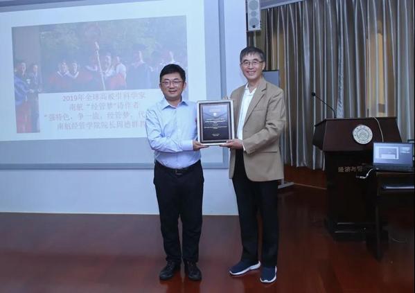 周德群院长(左)、梁能教授(右)交接IACMR感谢铭牌