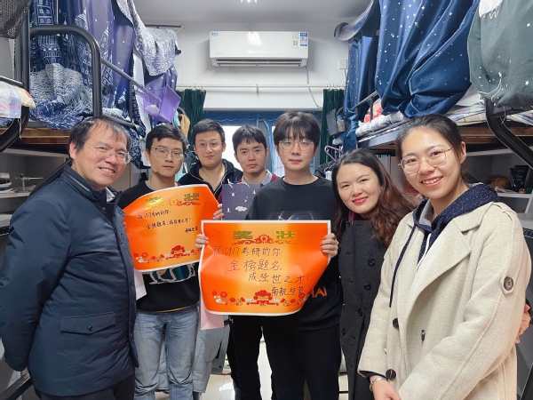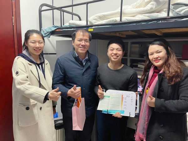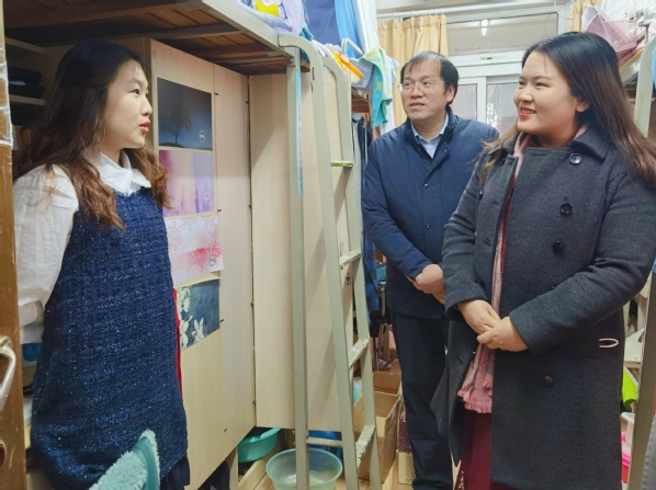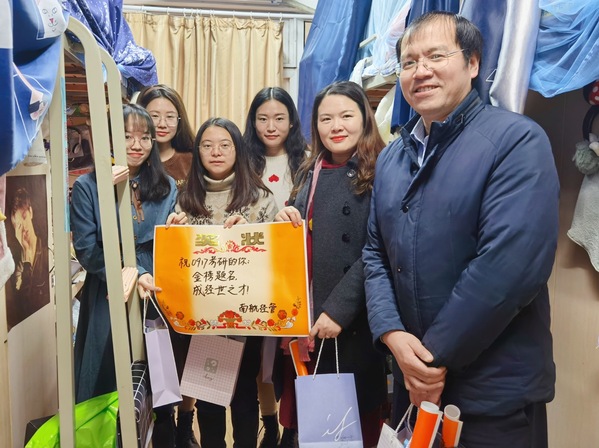 12月8日上午,漫画柜 党委副书记涂志宏、副院长邓晶、2017级本科生辅导员胡心雨、朱一豪共同到宿舍看望考研学生,为各位学子带去一份温暖、增添一份动力。