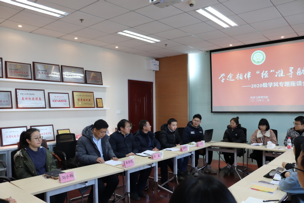 12月17日中午,“经”准导航——2020级学风专题座谈会于漫画柜 510教室顺利开展。学院副院长邓晶、管工系主任米传民、工商系主任谢嗣胜、经济系副主任王长波及各班级学生代表、辅导员代表参与本次座谈。